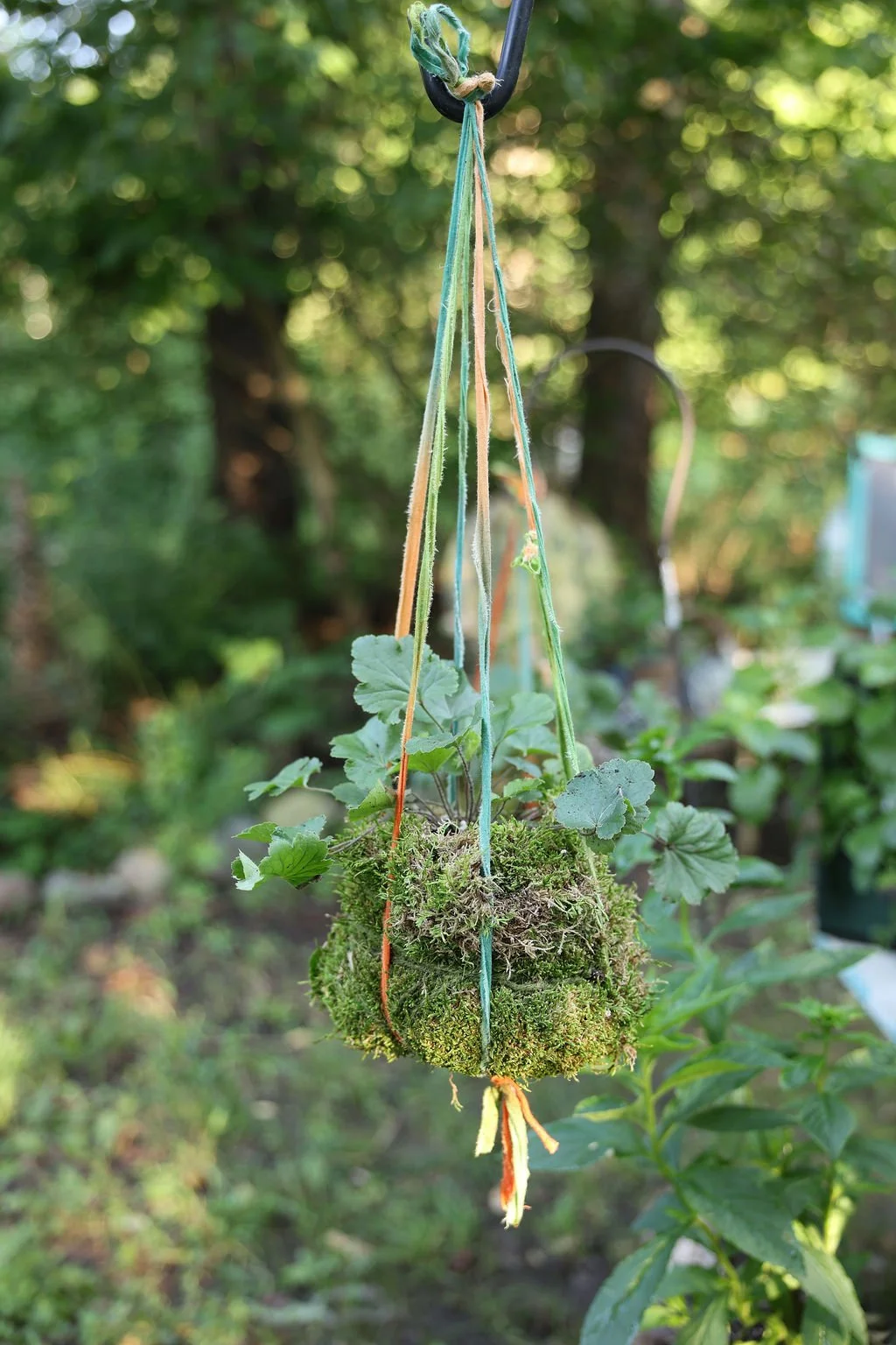 Plants ‘gift wrapped’ in burlap & paper tied with cotton ribbons.
